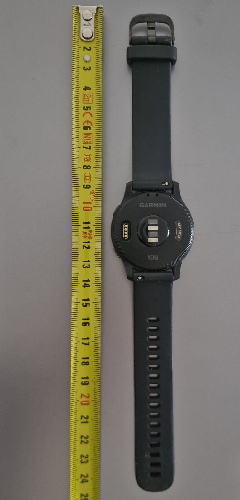 This is a fully functional Garmin Venu smartwatch with built-in GPS, heart rate monitoring, activity tracking, and smartphone notifications. It features a bright AMOLED touchscreen and a comfortable 20 mm quick-release silicone strap.